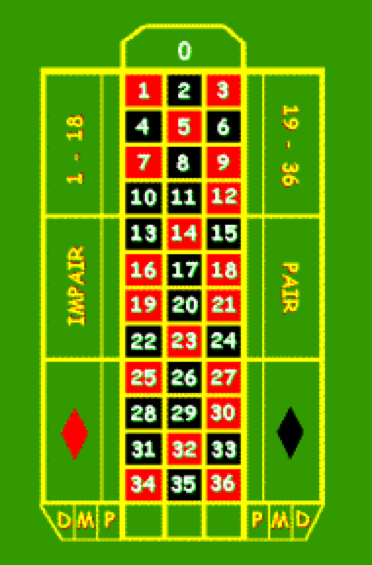 | Rouge ou Noir | Pair ou Impair | Manque ou passe |