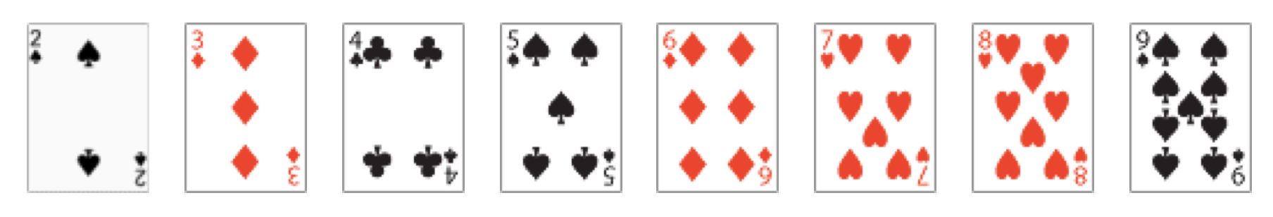 Les autres cartes, 2 à 9, ont la valeur de leur numéro.